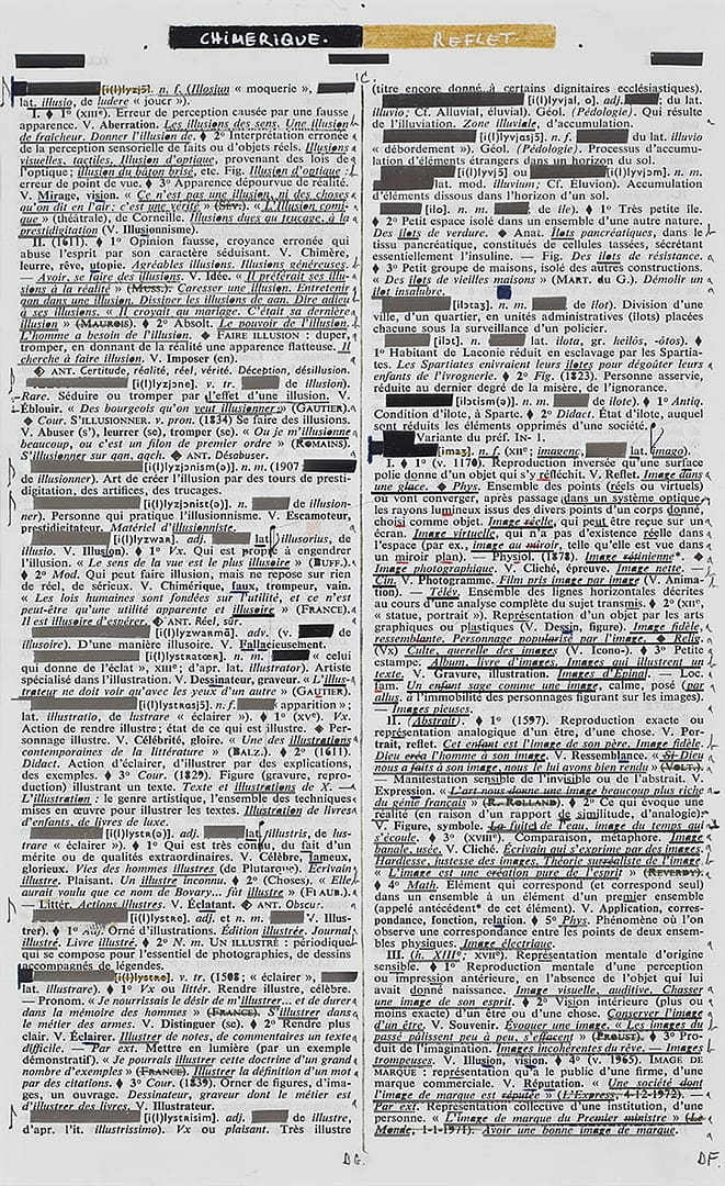 Au lieu de rester compact et sec, bien délimité, voici que le texte, gonflé par une eau sombre montée d’en dessous, devient marécageux, mouvant, s’écoule. On n’y progresse plus avec aisance, on s’y enfonce, s’y englue. Et l’eau continue à monter : les phrases se délitent, la langue se dissout, les points d’appui disparaissent. Menacent l’effondrement, le naufrage, la noyade dans la page.