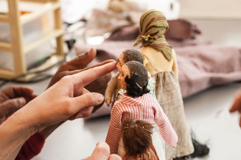 Après avoir recueilli plus de cinquante récits sur les ancêtres auprès des étudiants et de bénévoles de l’association Lire pour vivre, puis des clients du foyer restaurant Neruda, et enfin des habitants de la résidence Méliès, l’atelier s’est concentré sur une dizaine de ces histoires dont les personnages ont été sculpté s. Le spectacle proposait dans l’ensemble des scènes et des souvenirs plus quotidiens, plus universels, sans rien perdre de sa pertinence.